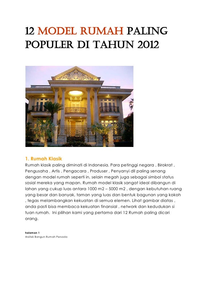 12 Model Rumah Paling Populer Di Tahun 2012